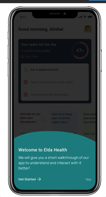 One of the crucial features we aimed to incorporate was a high level of personalization. This involved tailoring the homepage to meet the specific needs of each user, taking into account their selected stage and goal within their menopause journey.